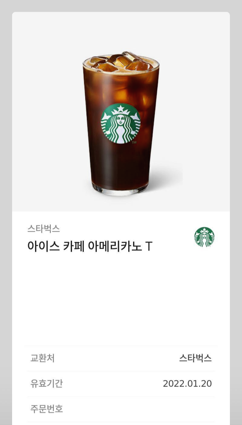 스타벅스 아이스 아메리카노 T 기프티콘을 올려보도록 하겠습니다!