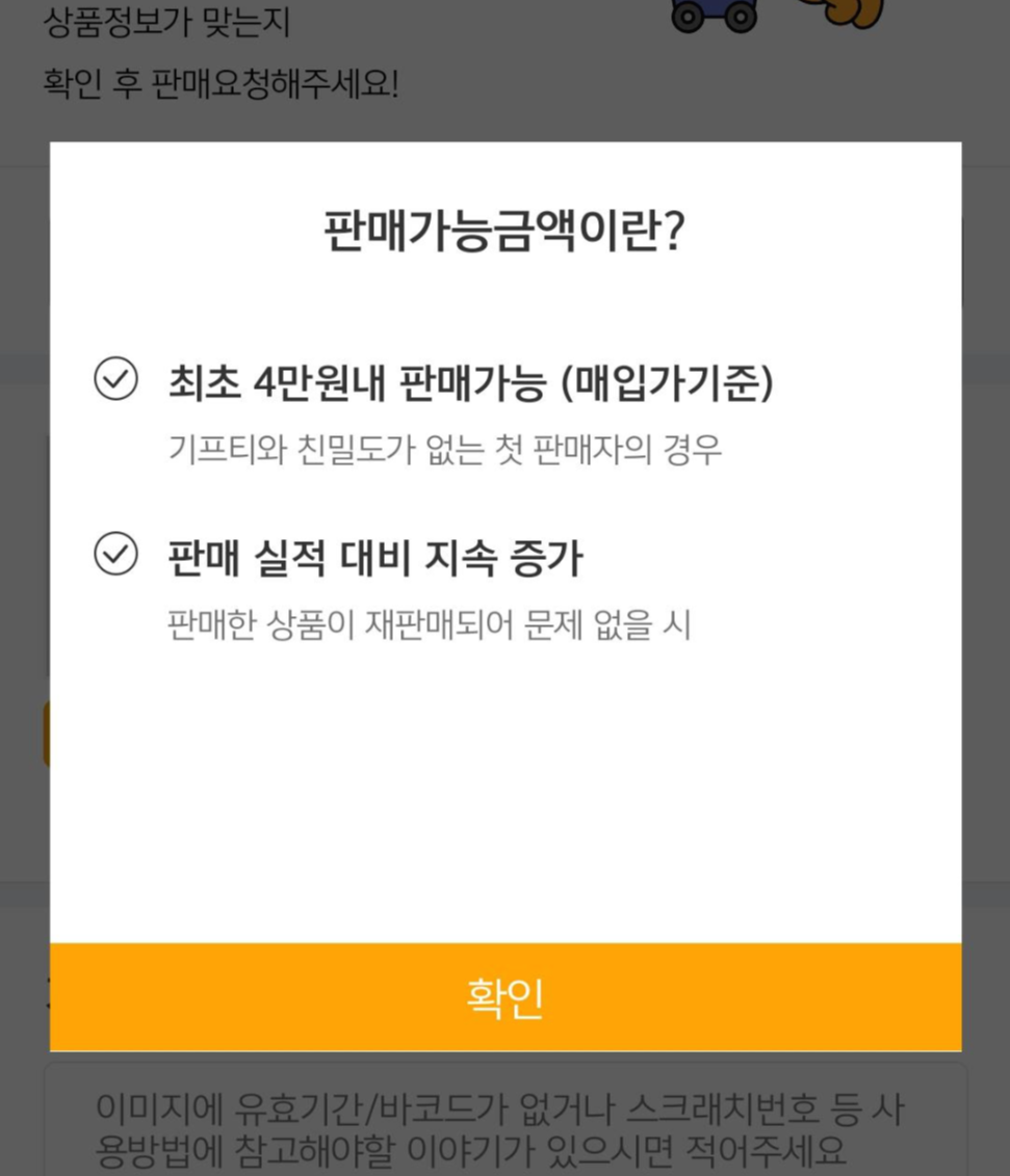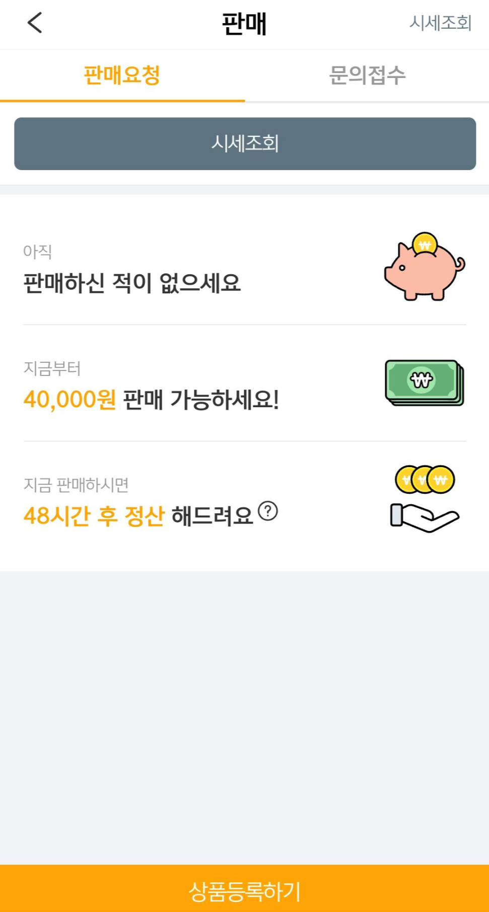 판매요청 마지막 단게에서 매입 예상가격을 알 수 있고