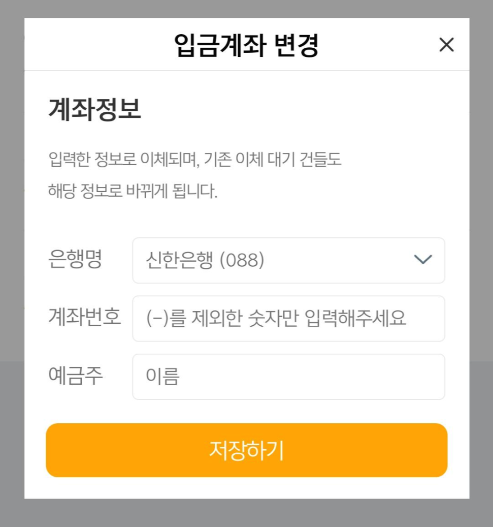 본인의 계좌번호 정보를 입력하고 '저장하기' 클릭!