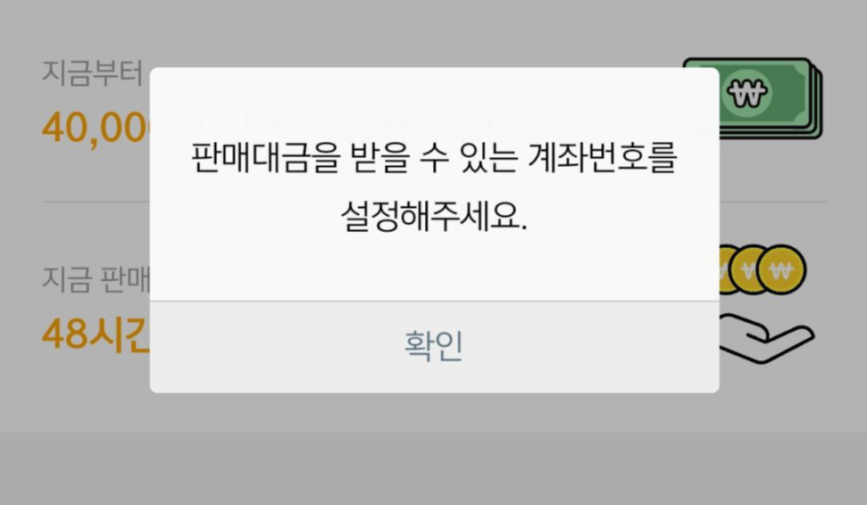 그런다음 판매대금을 받을 수 있는 계좌번호를 설정!