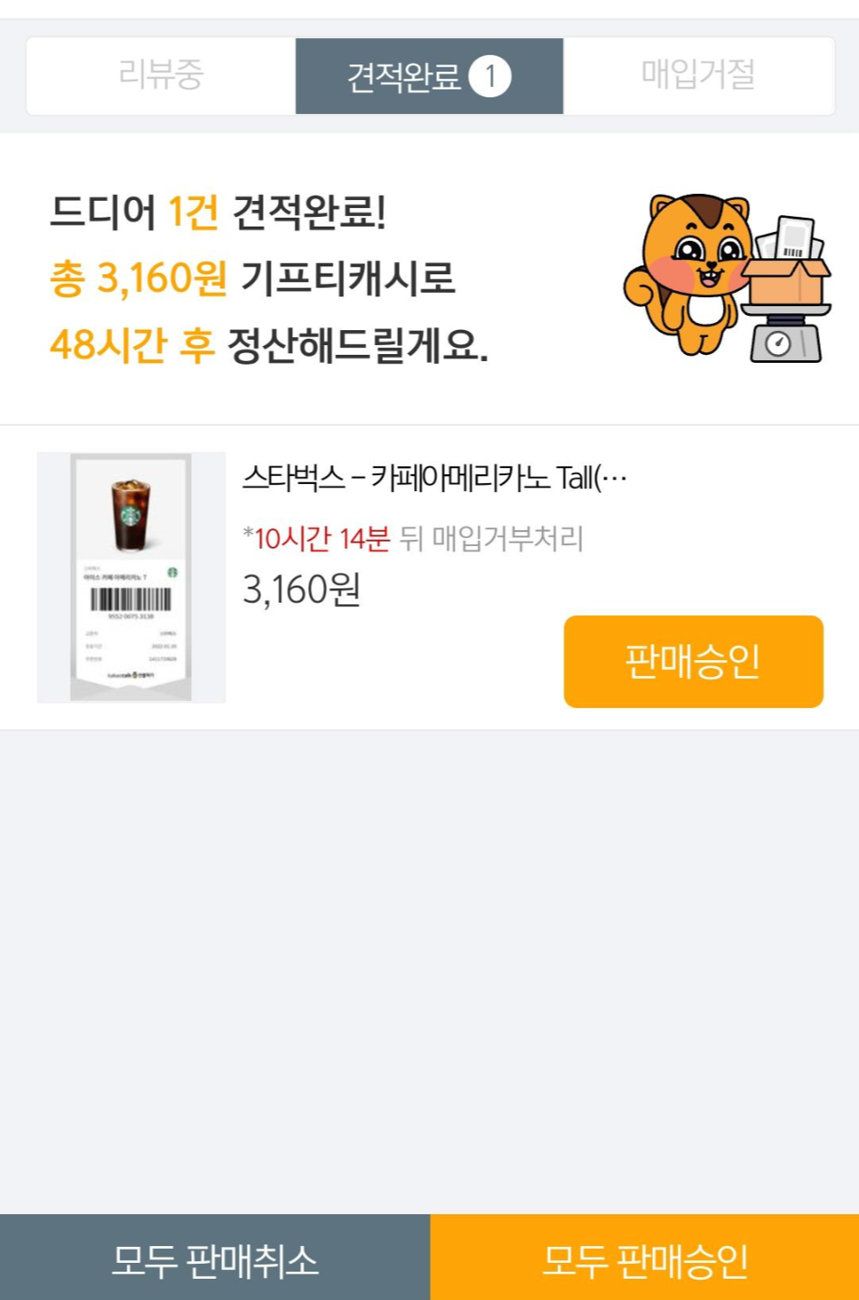 기프티스타쪽에서 제가 요청한 판매건을 검토한 후