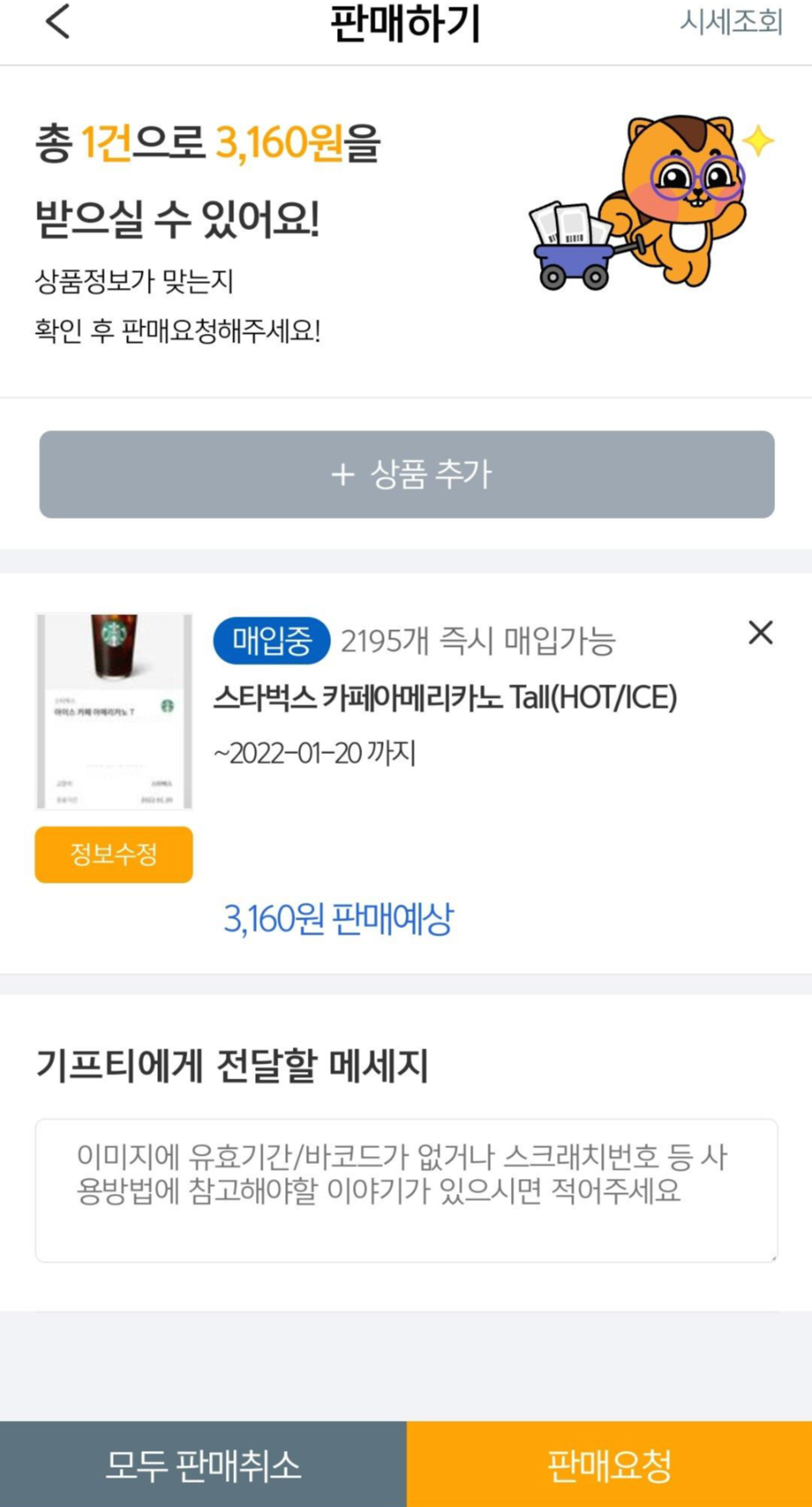 기프티(구매자)에게 전달할 메세지를 적을 수도 있습니다.