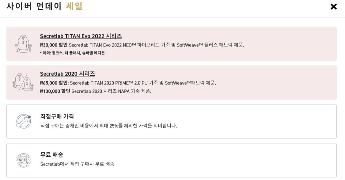 < Secretlab TITAN 2020 PRIME™ 2.0 PU 가죽 및 SoftWeave™패브릭 제품 > - 65,000\ 할인