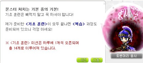 토벤머리 용사로부터 받는 훈련은