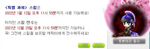 '특별 과외' 스킬은 '22년 1월 12일'까지 사용 가능하며