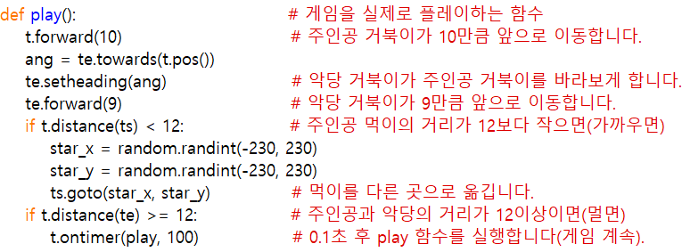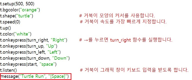 그리고 빨간 거북이의 이동에 관련한 명령어가 좀 바뀌었는데