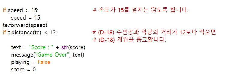 'spped = score + 5' 명령어 때문에 빨간 거북이의 속도는