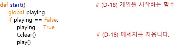 play함수 안에 'score'와 'playing' 변수가 글로벌 지정되어있다.