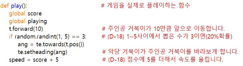 DAY17과 DAY18에 있는 'play'함수인데 바뀐점을 보면
