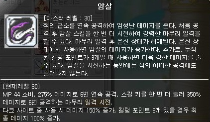 | [메이플스토리 스킬 소개] 모험가 도적(시프마스터) 3차 (4) | 2021.12.15 |