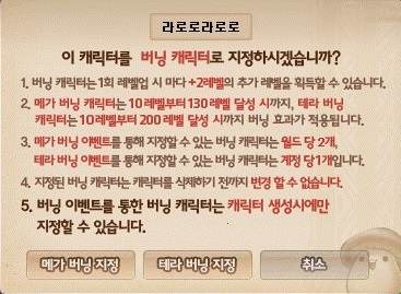 버닝 캐릭터를 생성하게되면