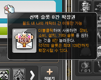 ■ 메이플 월드 잡화상점에 화살, 수비 표창, 불릿, 마을 귀환 주문서, 거짓말 탐지기, 외형 되돌리기 이용권, 실버 카르마의 가위, 펫의 먹이, 마스터리 북 20, 마스터리 북 30이 모두 포함되도록 개선됩니다.