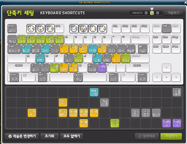 단축키, 링크 스킬 프리셋, 채팅 명령어(매크로)