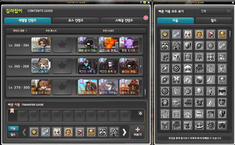 내가 자주 방문하는 마을 또는 필드를
