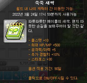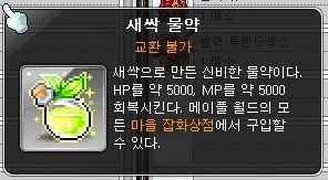 ■ 신규 회복 물약 아이템 새싹 물약이 추가됩니다. 새싹 물약은 메이플 월드의 모든 잡화상점에서 구매 가능합니다.