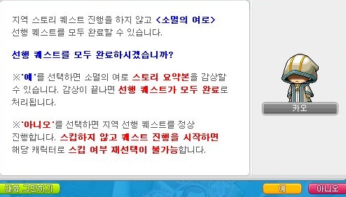 '소멸의 여로'부터 스토리 퀘스트를 스킵할 수 있습니다.