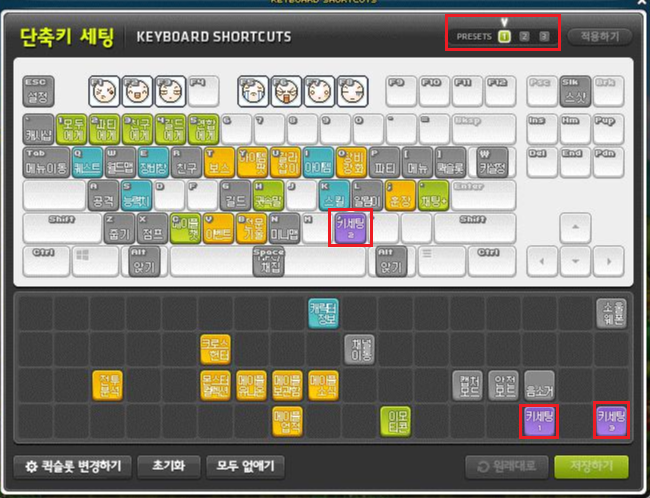 '키 세팅' 버튼을 단축키 슬롯에