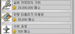 메이플 월드 잡화상점에 화살, 수비 표창, 불릿,